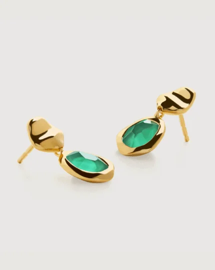 ALESSIA LOVE Mini Pyramid Natural Stone Charm Hoop Earrings