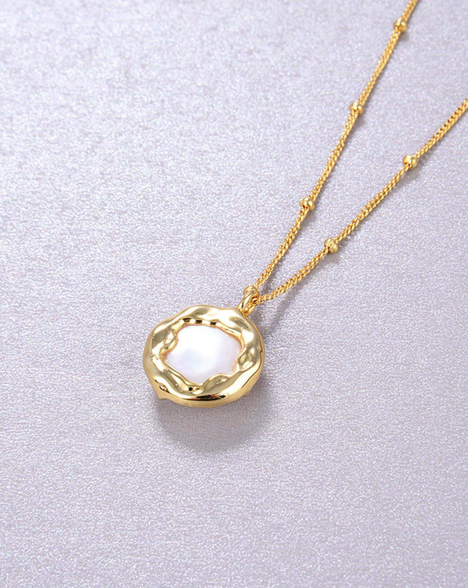A natural baroque button pearl necklace with an 18K gold-plated frame—soft, elegant, and effortlessly versatile.