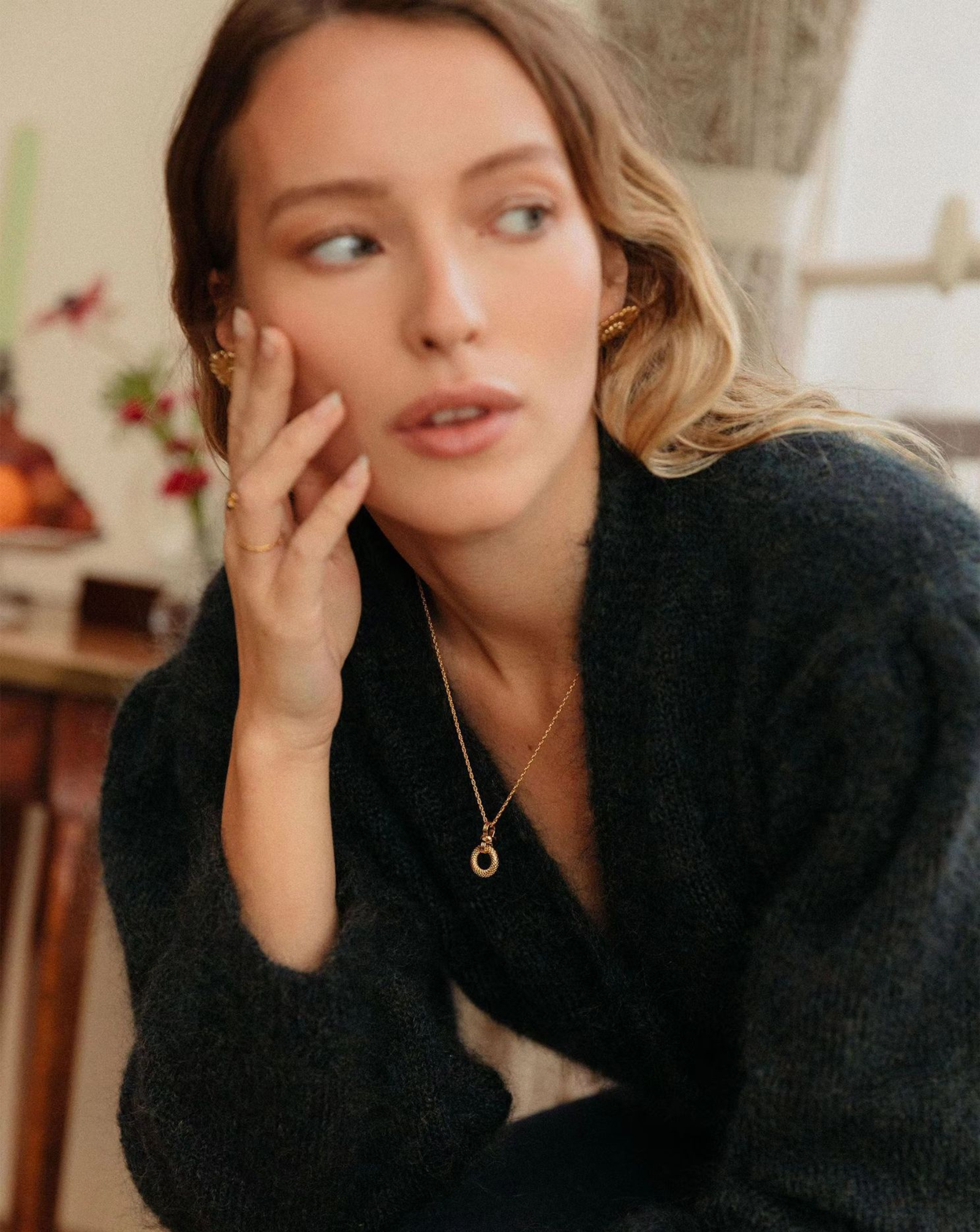 A handcrafted textured circular pendant necklace with an 18K gold-plated finish—minimal, elegant, and perfect for daily wear.