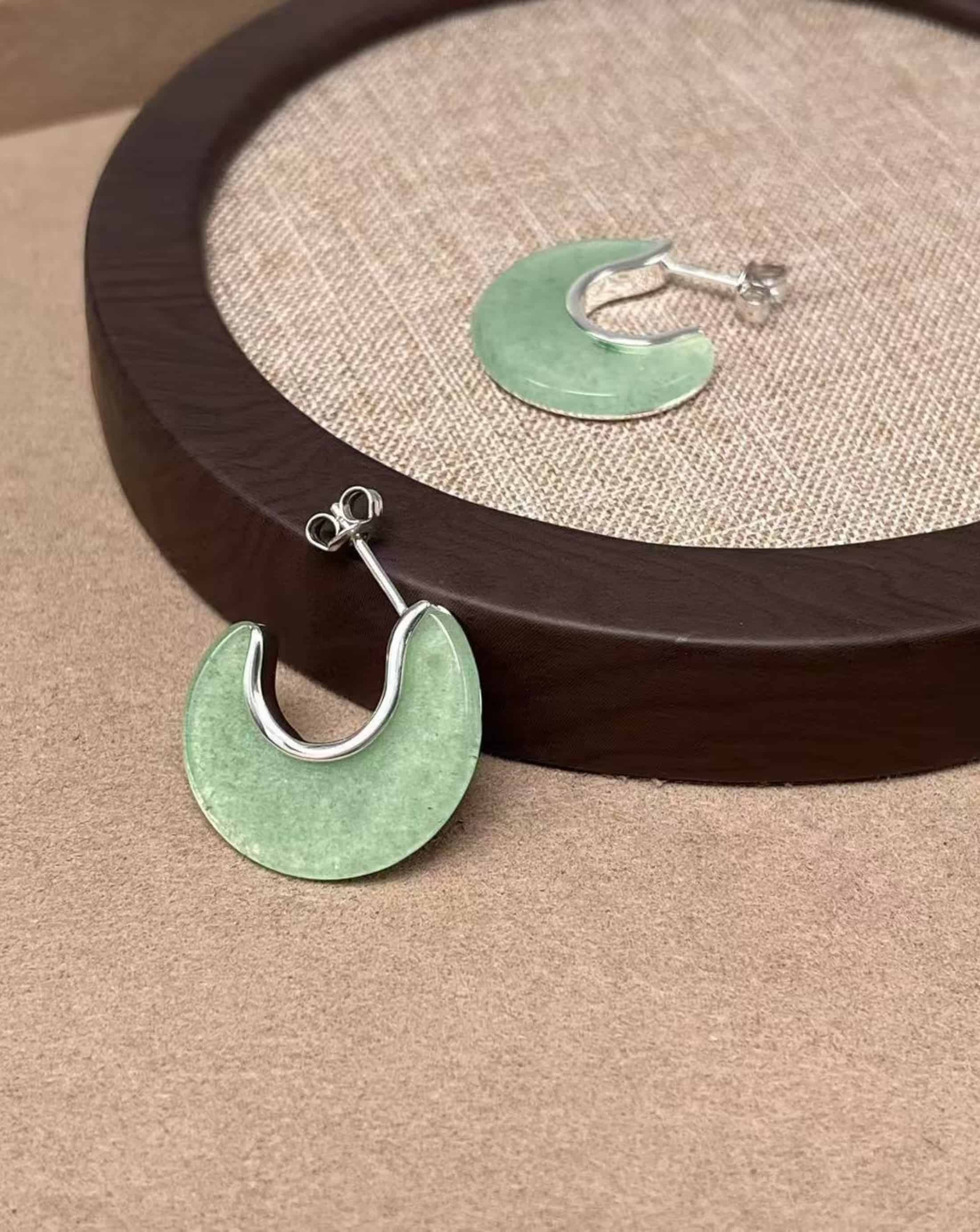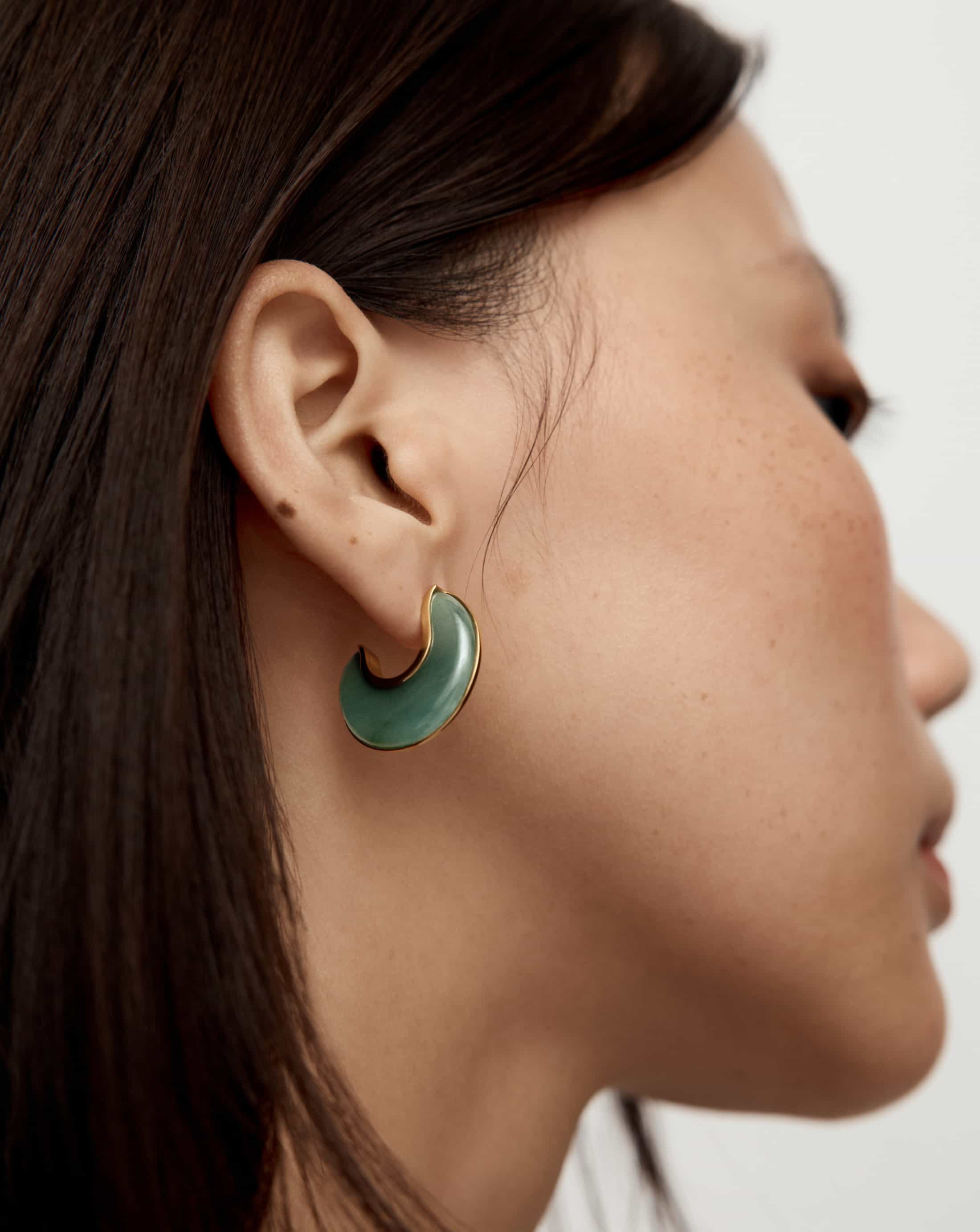 The sculptural half-moon silhouette sits comfortably on the ear, offering a balanced blend of modern minimalism and vintage charm. Perfect for elevating both casual looks and refined outfits.