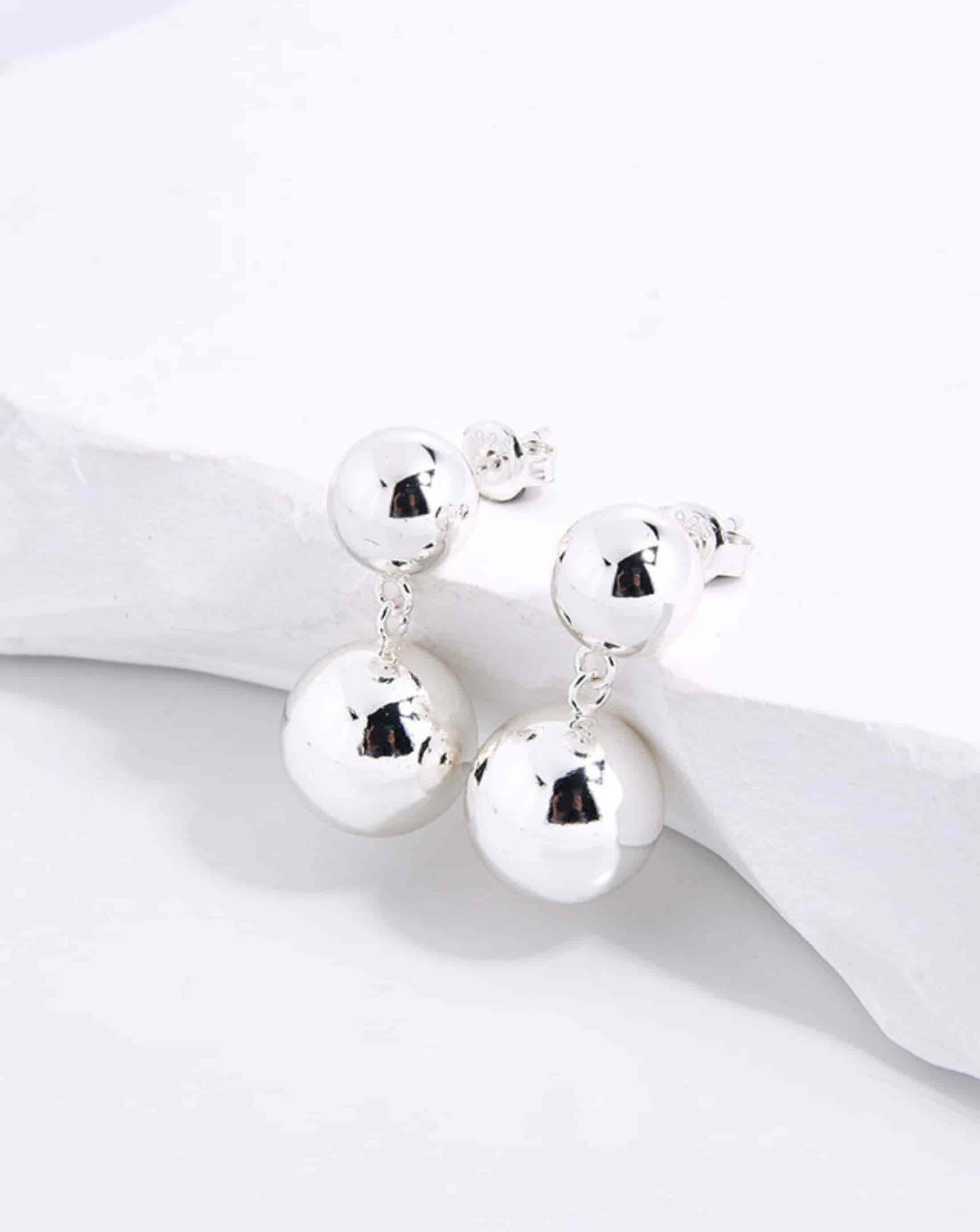 A timeless pair of double sphere stud earrings crafted in 925 sterling silver, available in 18k gold plated or silver finish.