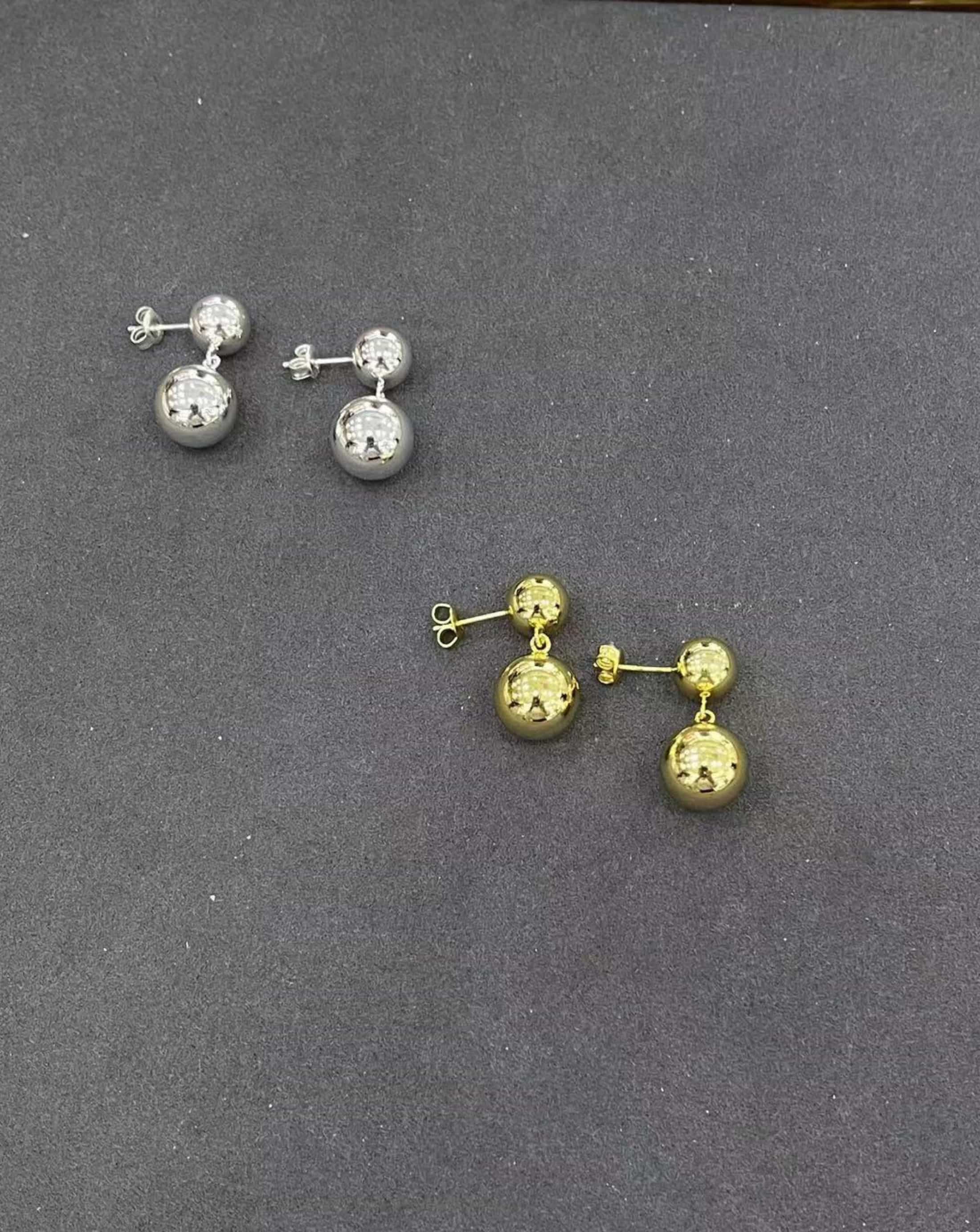 Inspired by vintage aesthetics and modern geometry, these earrings feature a refined double-ball silhouette with a smooth, high-polish finish. Clean lines and balanced proportions create a sculptural look that feels both contemporary and classic.