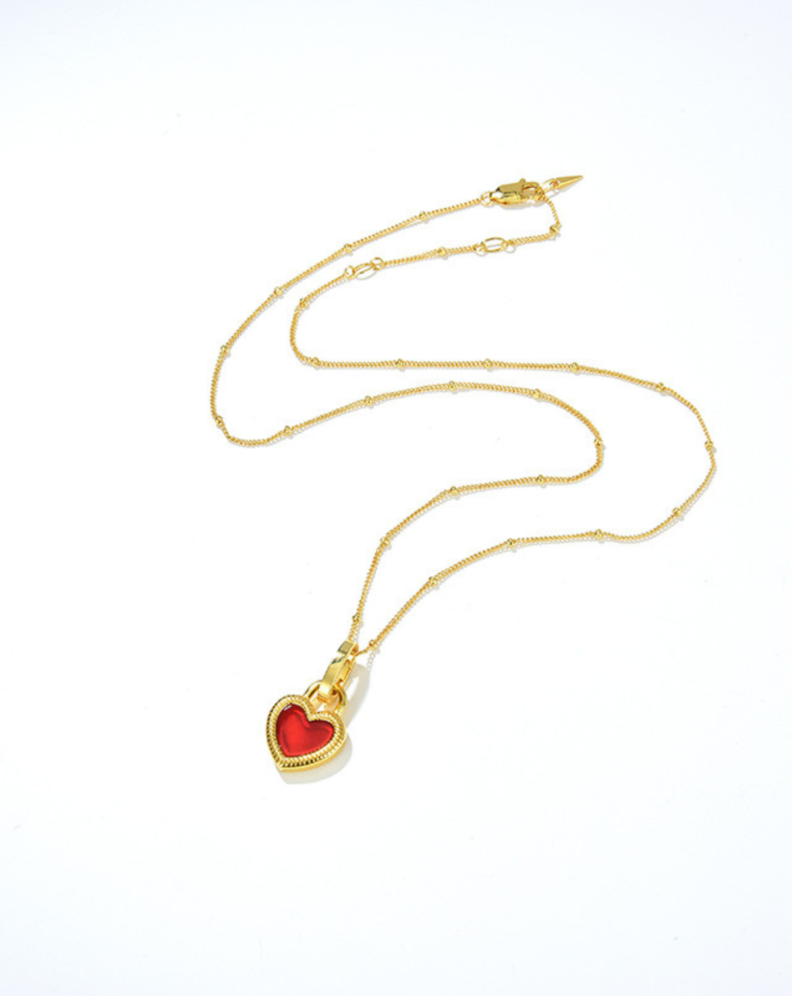 This reversible heart pendant necklace features two contrasting sides—romantic red onyx and soft white mother-of-pearl—allowing you to switch between bold and delicate styles effortlessly. The sculpted frame and refined chain create a polished, elegant look suitable for daily wear or layered styling.