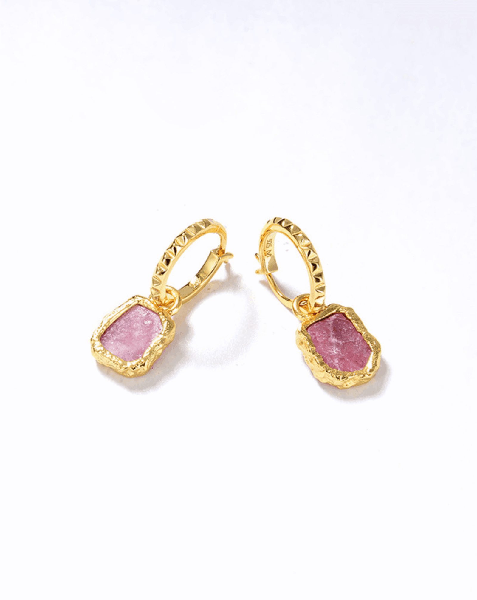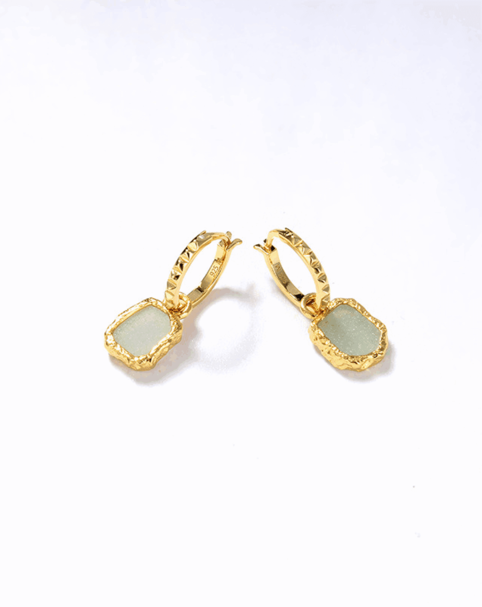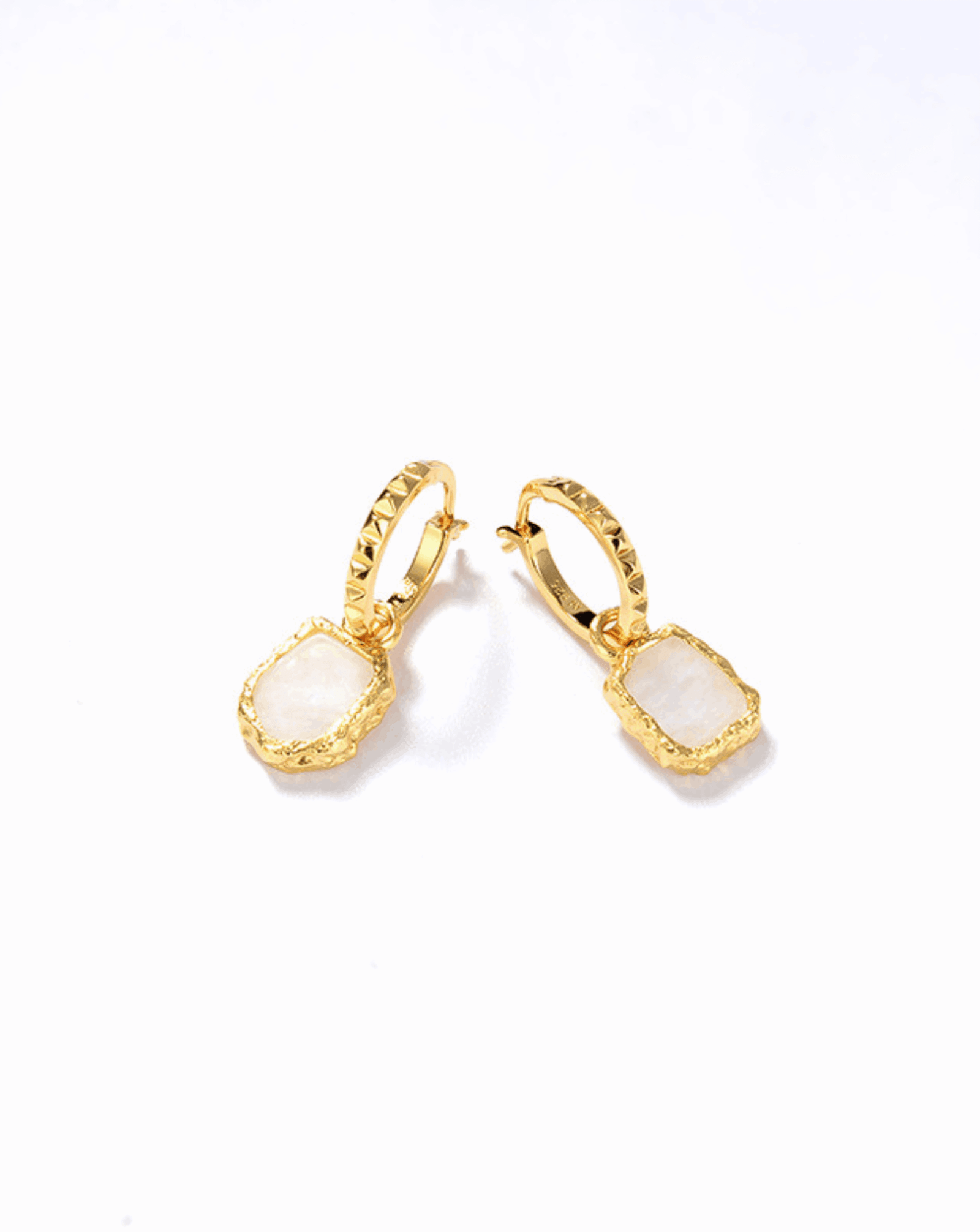 Featuring a square-cut natural stone pendant on delicate 18K gold-plated hoops, these earrings embody minimalist sophistication—perfect for daily wear or gifting.