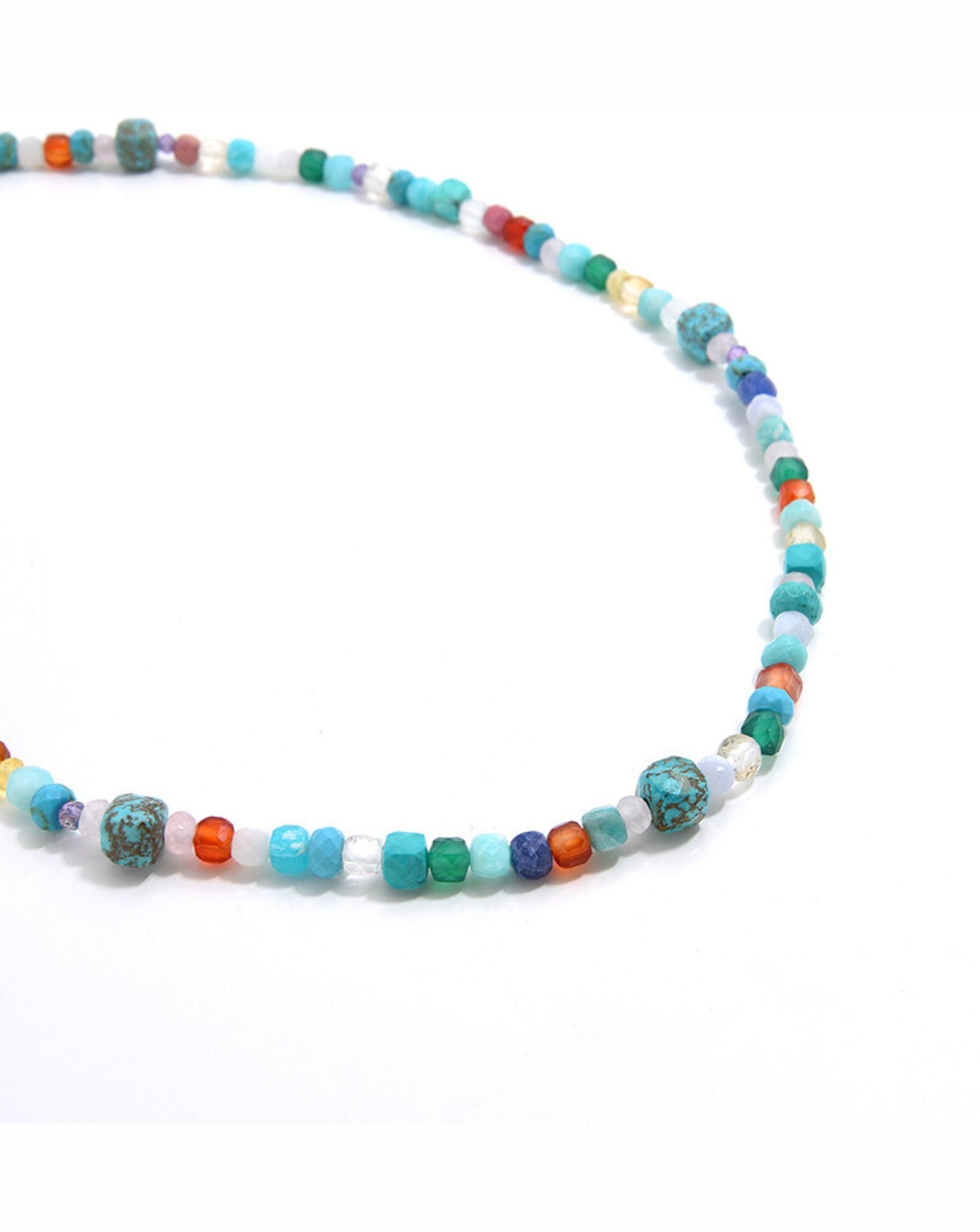 This natural gemstone beaded bracelet combines a vibrant mix of stones—green agate, turquoise, moonstone, amethyst, lapis lazuli, and pink opal—offering rich colors and unique textures. Lightweight and easy to style, it can be worn alone or layered for a fresh spring-summer look.