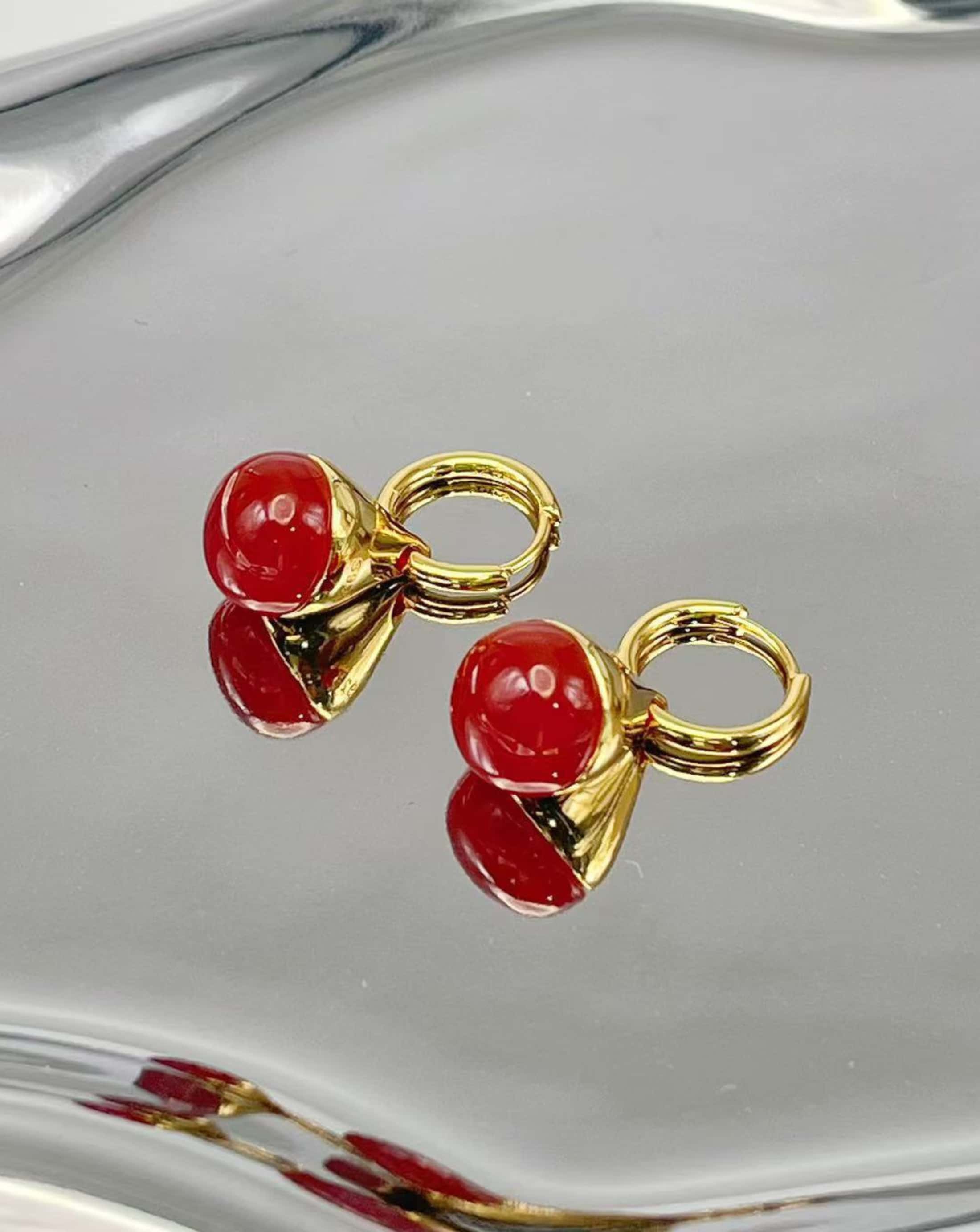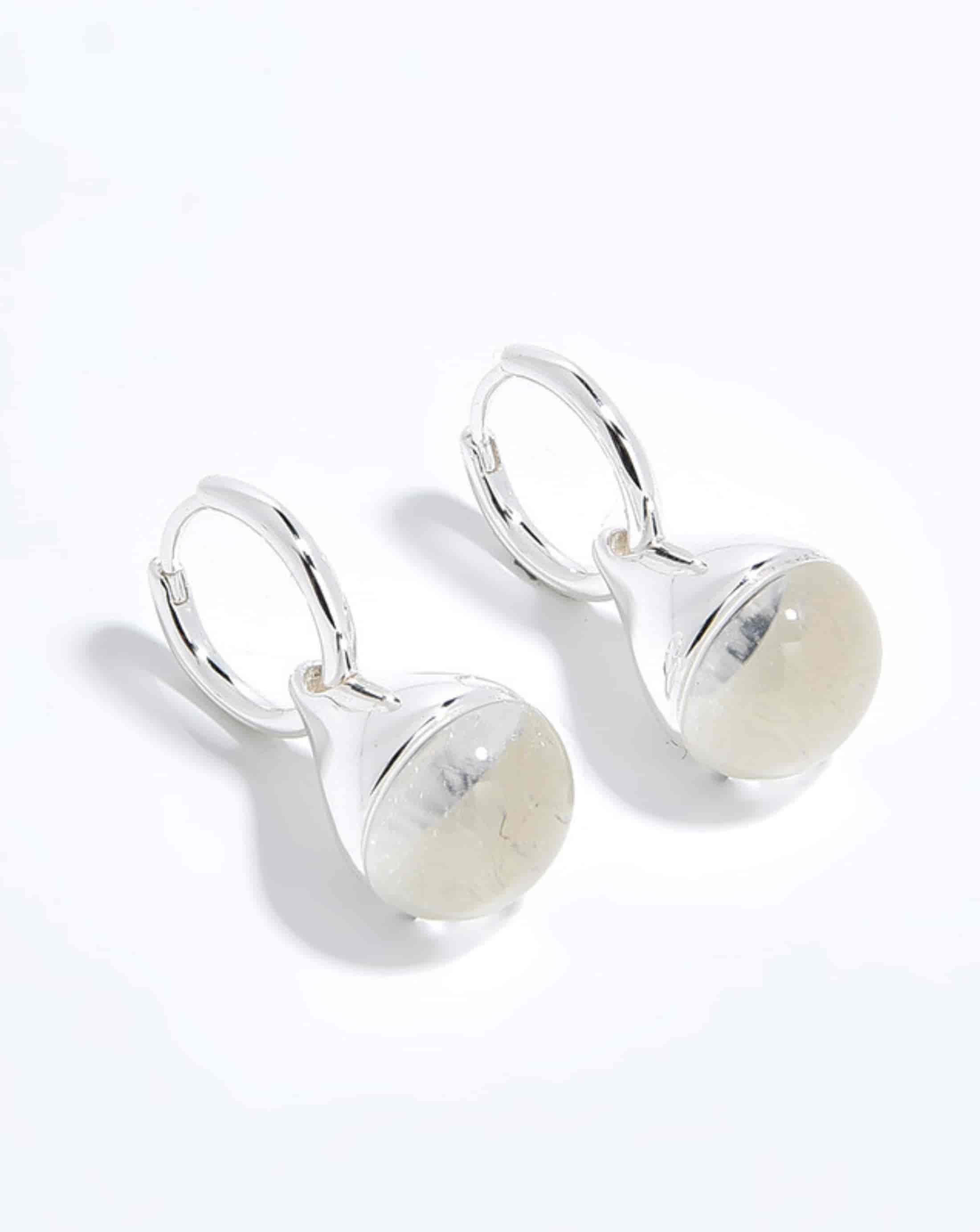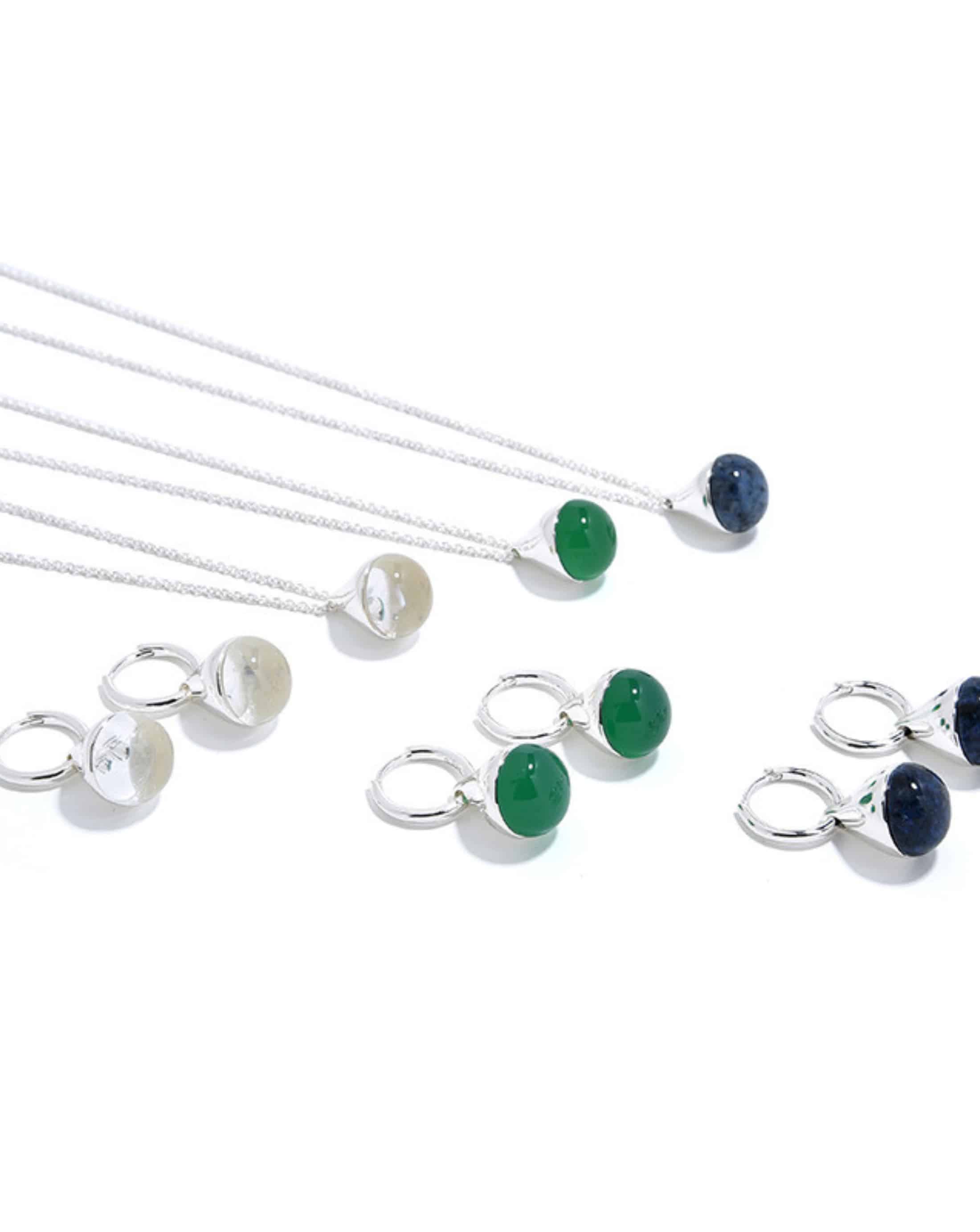 ALESSIA LOVE Natural Stone Teardrop Earrings, crafted from S925 sterling silver, feature smooth, rounded natural gemstones and a simple teardrop shape, presenting an understated yet luxurious feel. The metal surface is bright and delicate, and the small, exquisite design makes them suitable for both everyday wear and formal occasions.