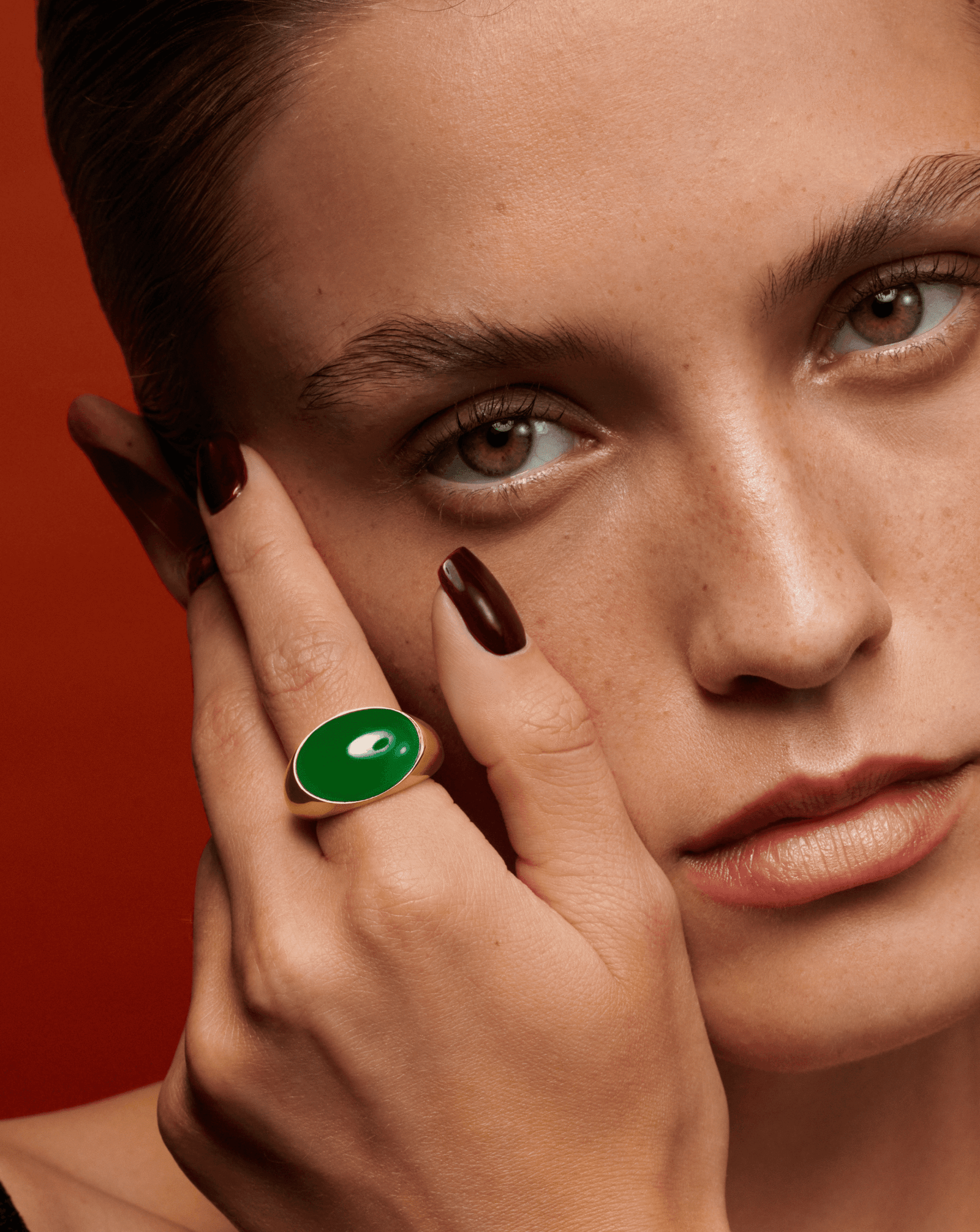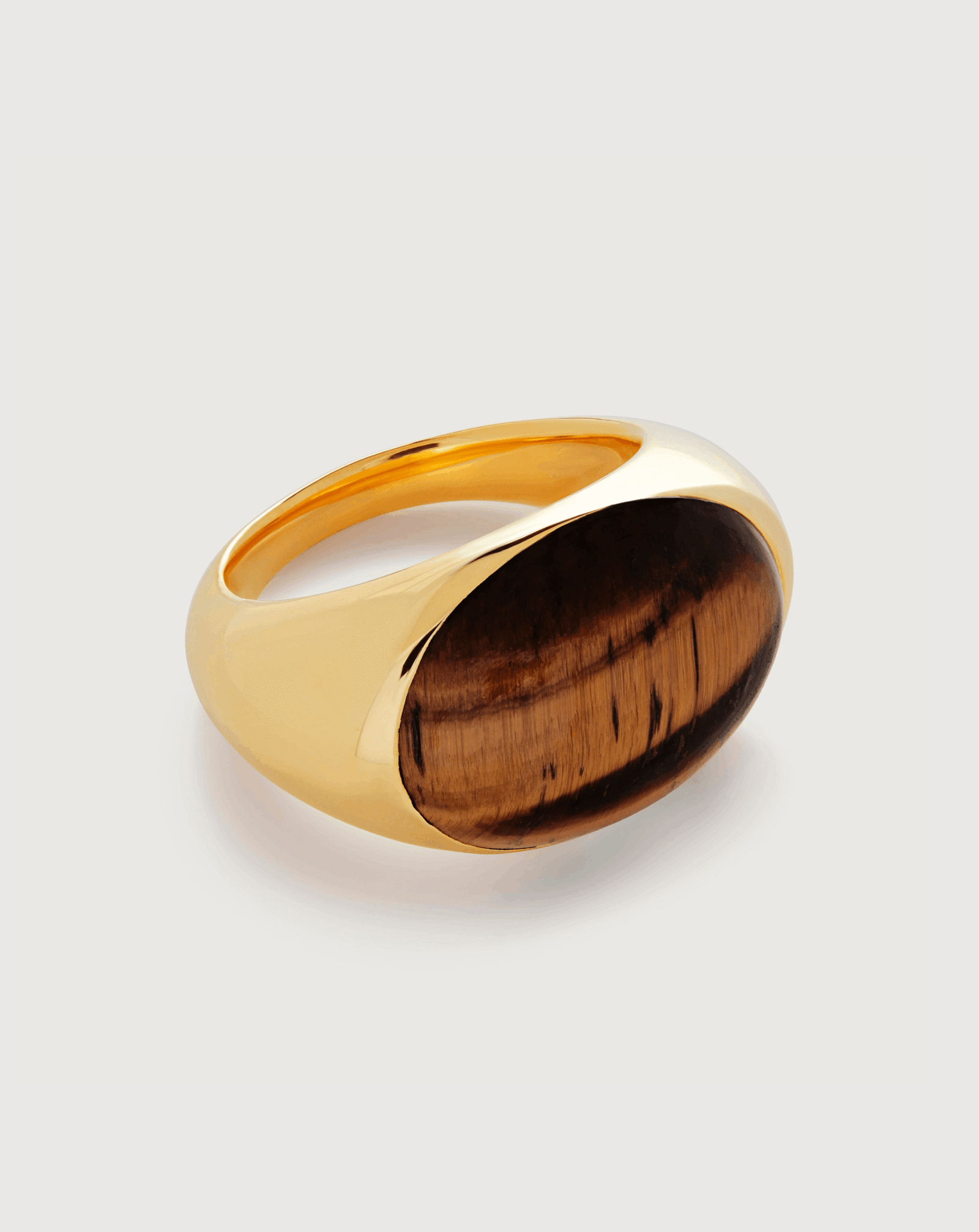 A smooth oval silhouette paired with the natural brilliance of gemstones—refined yet empowering. Malachite embodies confidence and renewal, onyx offers grounding balance, and tiger’s eye radiates strength and protection. Crafted in 18K gold-plated sterling silver with a sleek, sculptural finish, it’s a timeless statement of modern elegance.