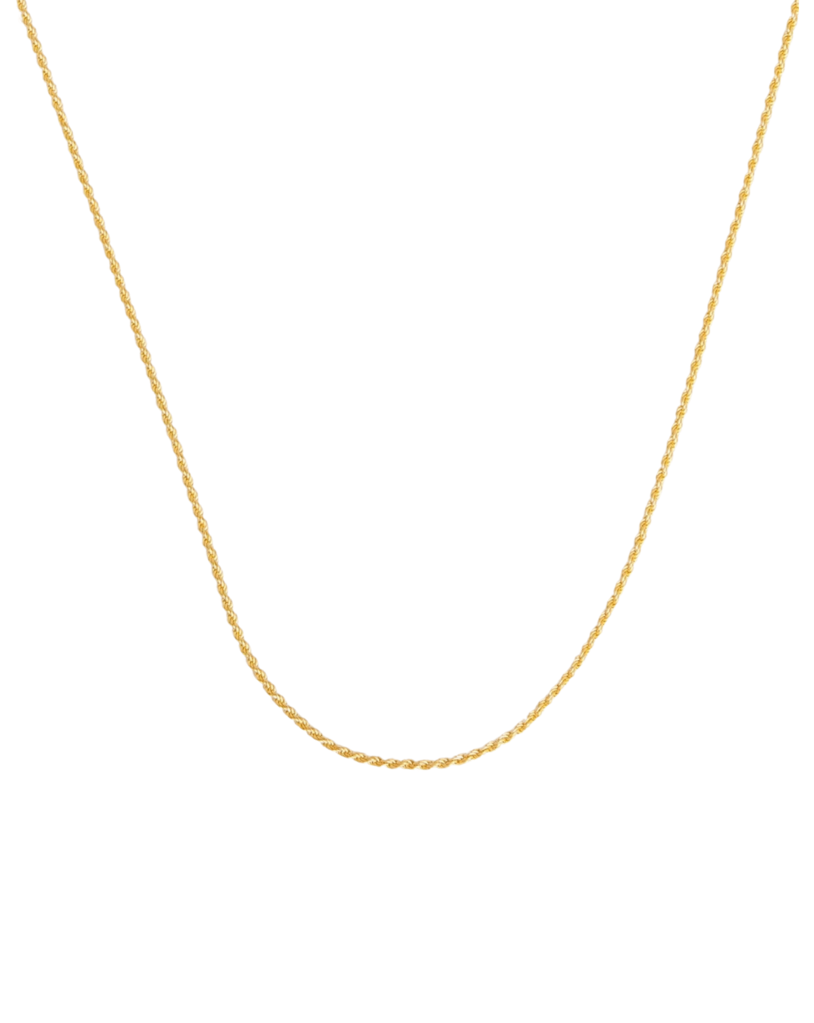 Elevate your essentials with this versatile rope chain. The subtle twist detailing adds texture and dimension, making it perfect for wearing alone or layering with your favorite chunky chains. Lightweight, classic, and endlessly wearable.