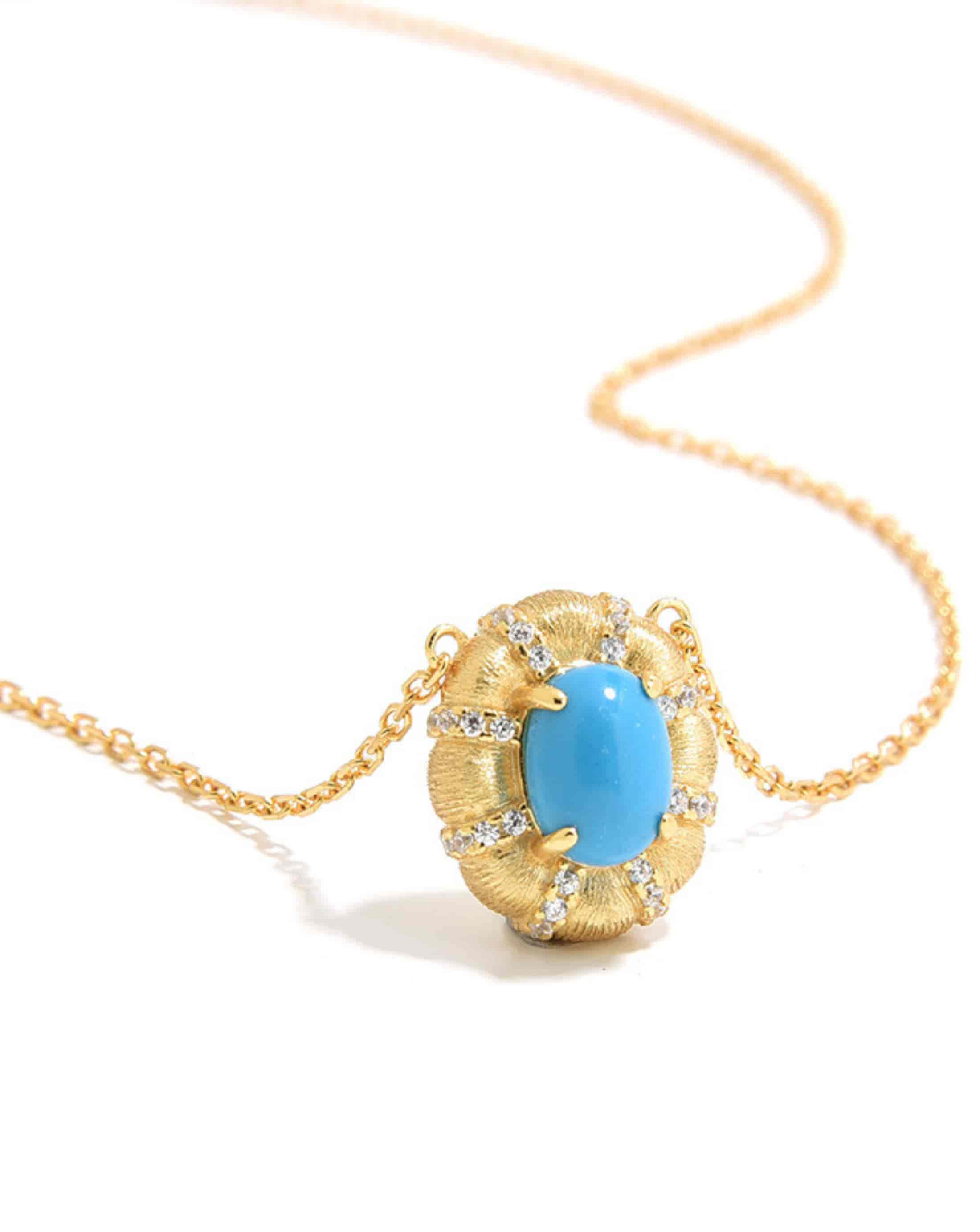 An oval turquoise pendant crafted with Italian brushed detailing, set in S925 sterling silver.