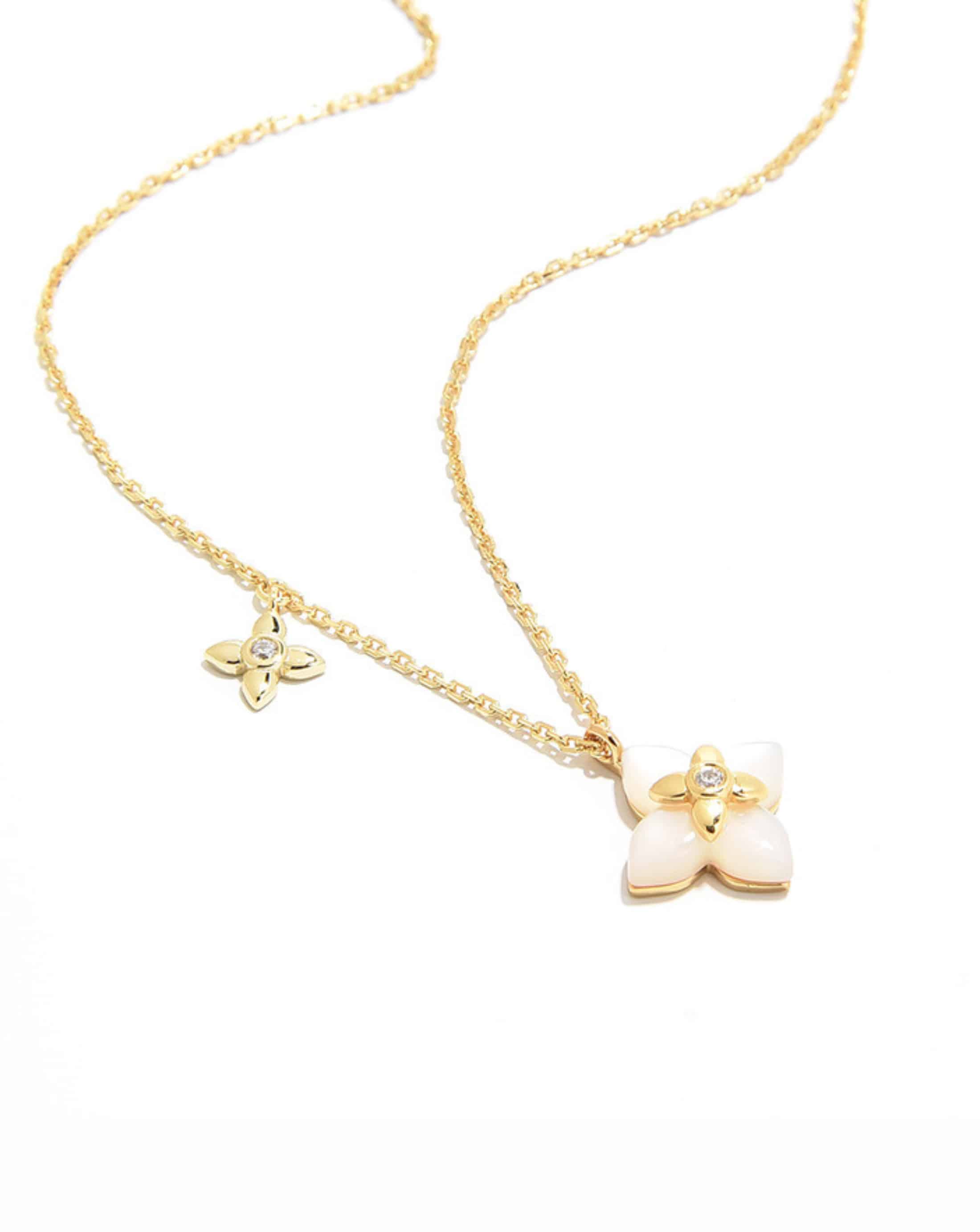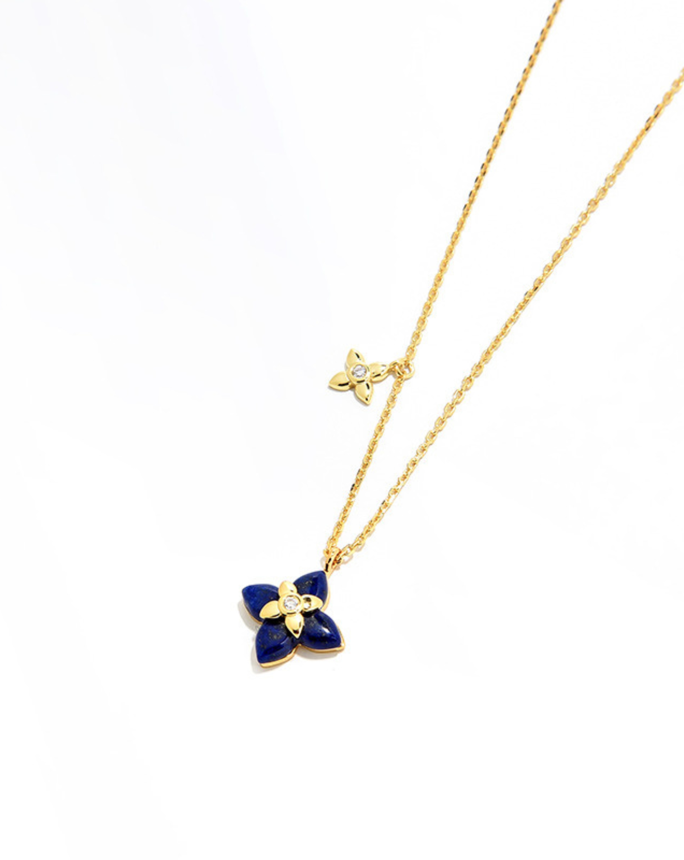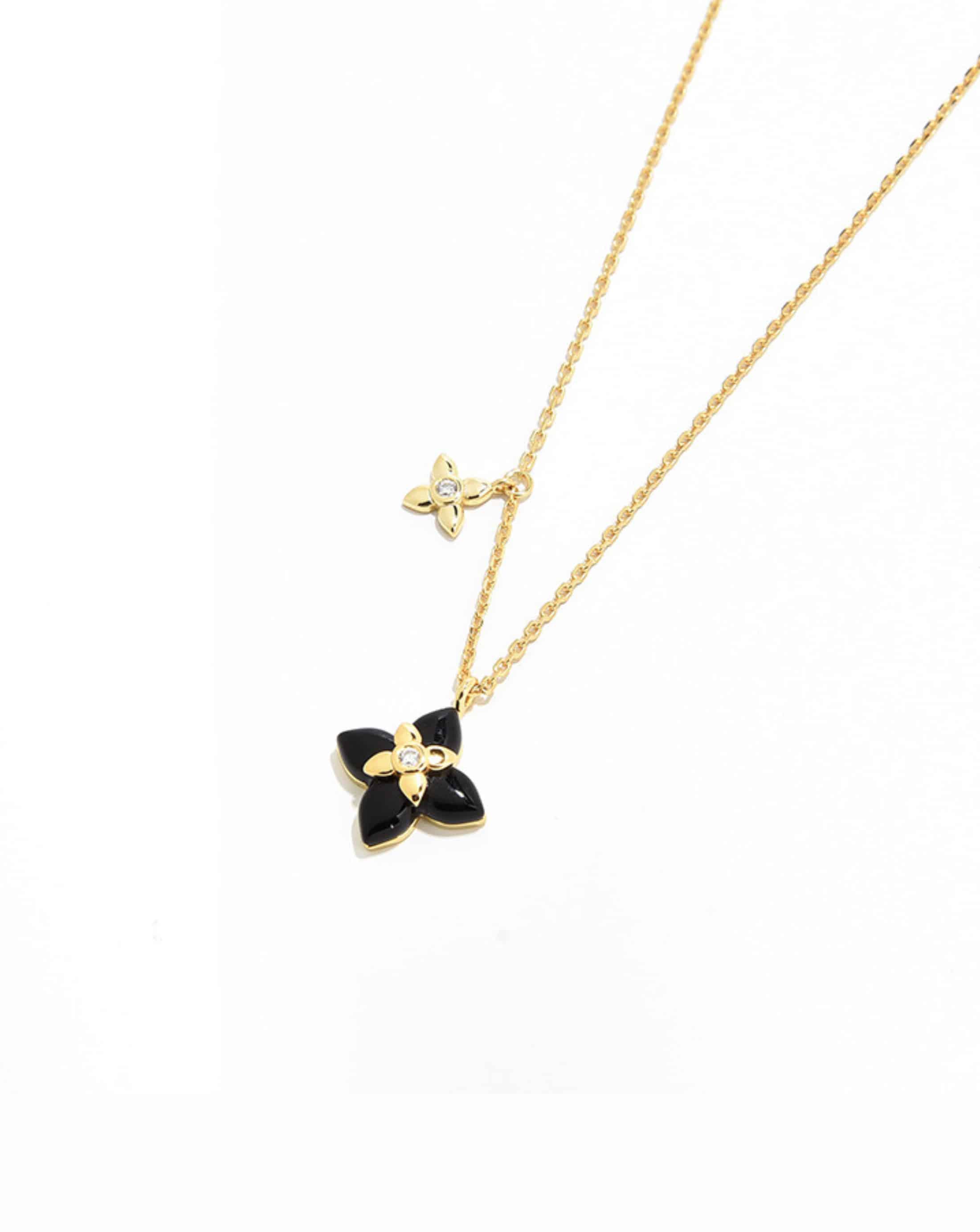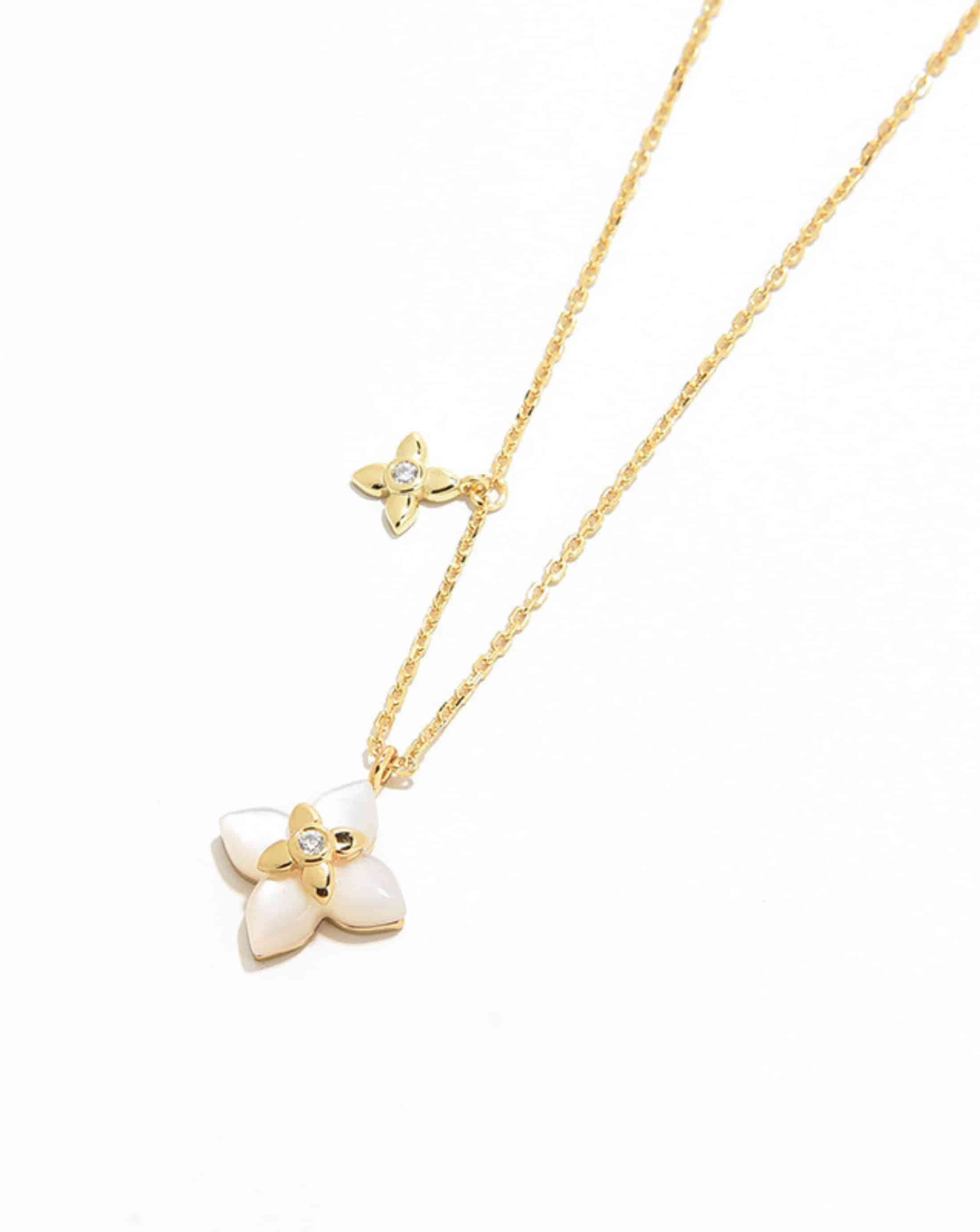 A French-inspired four-leaf flower necklace crafted with natural agate and gold-plated sterling silver. Elegant, refined, and perfect for everyday wear or layering.