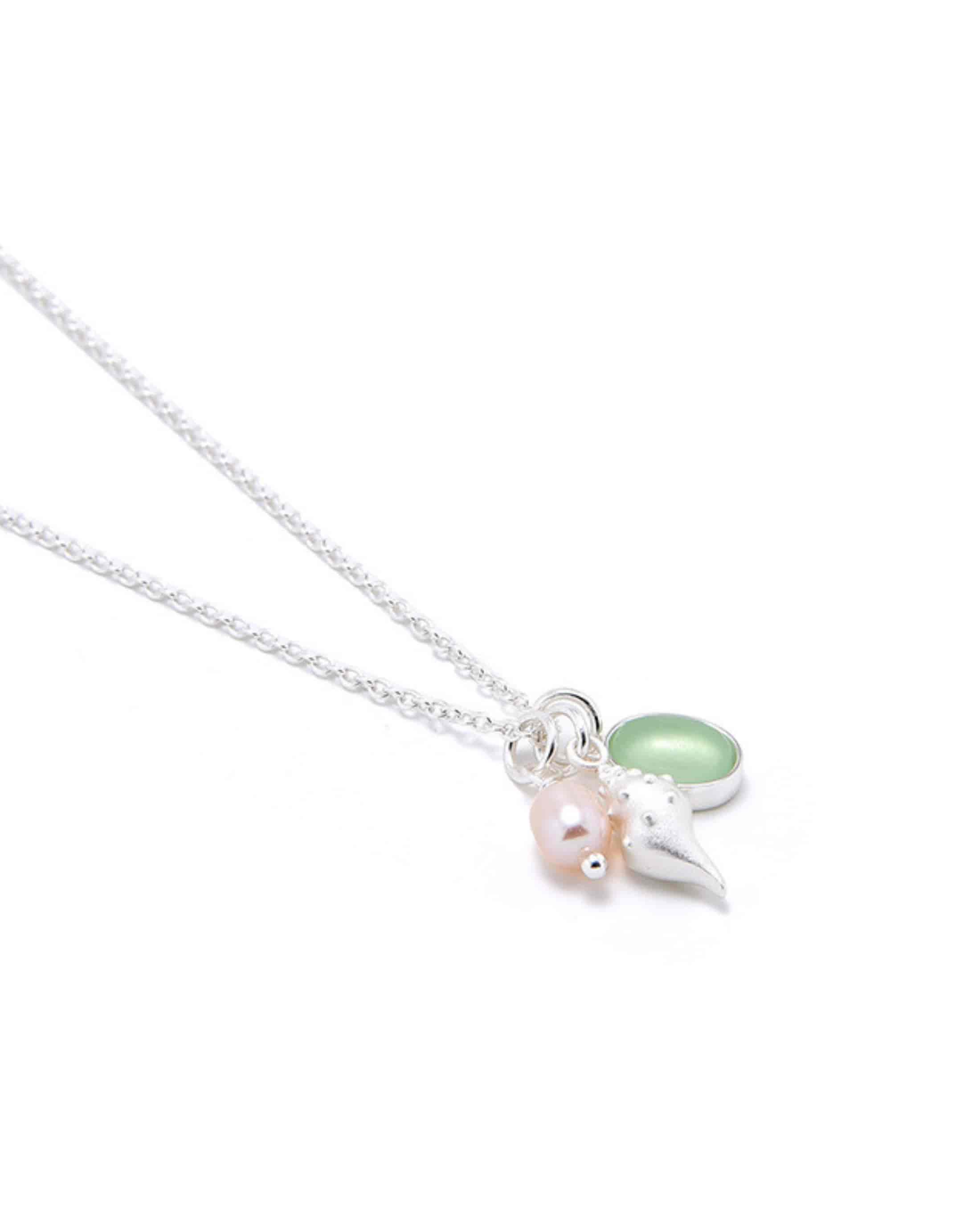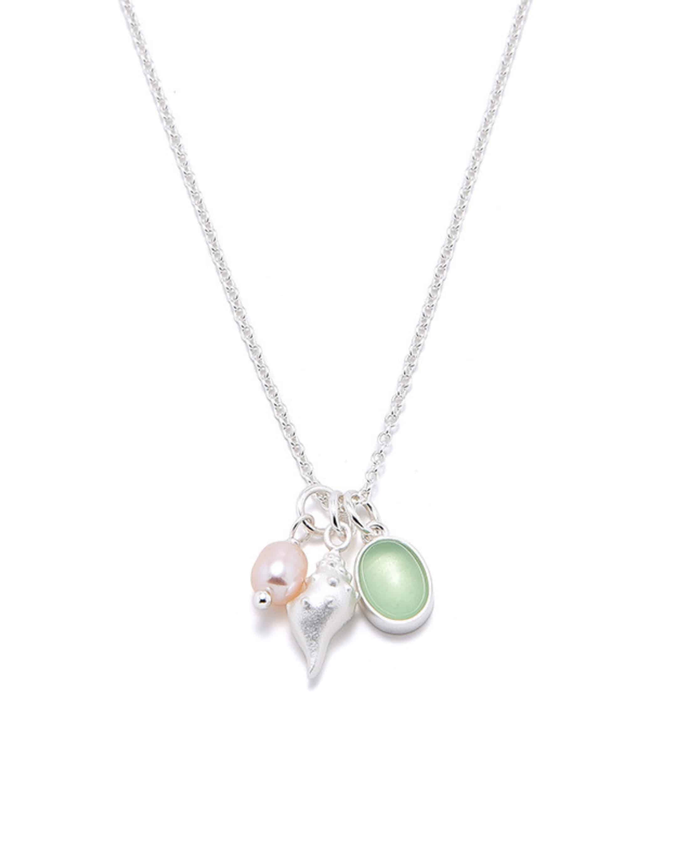 A refined French-inspired necklace featuring a delicate shell charm, natural pearl, and soft glass accent. Elegant, lightweight, and perfect for everyday wear or layering.
